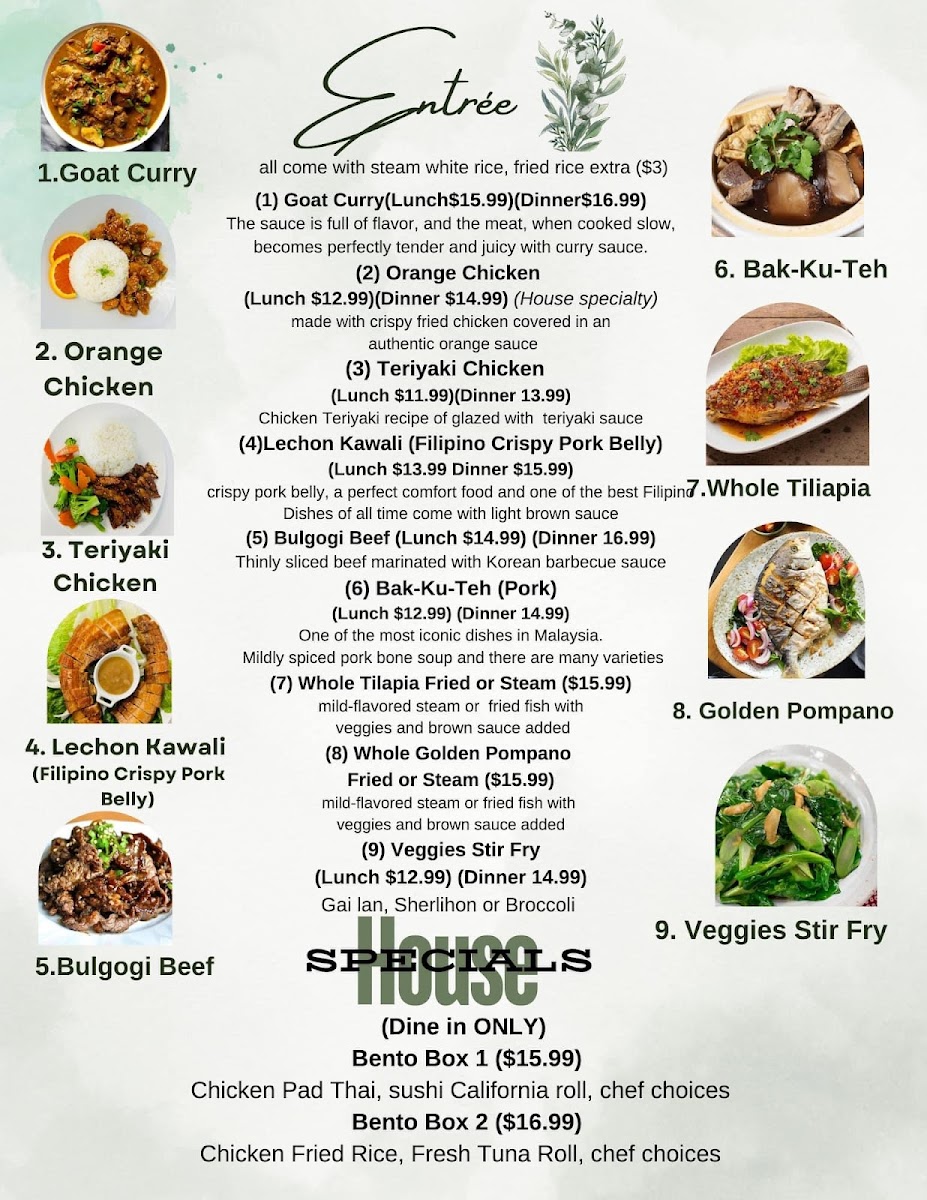 Lunch 11AM-3PM Dinner 3PM- to closed (Not allowed to order lunch after 3pm)