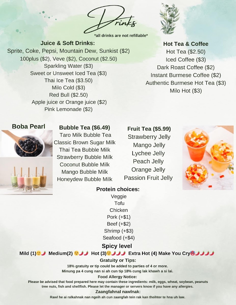 Drinks, Bubble Tea & Fruit Tea